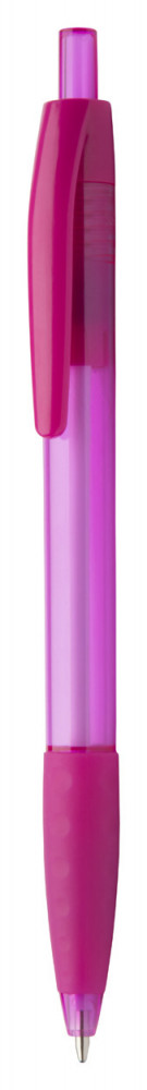 Átlátszó műanyag golyóstoll megegyező színű gumi markolattal. Kék tollbetéttel szállítjuk.