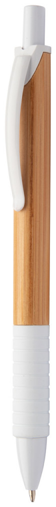 Bambuszból készült golyóstoll, színes gumi markolattal és azonos színű műanyag klipsszel. Kék tollbetéttel szállítjuk.