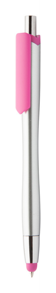 Műanyag golyóstoll érintőképernyős funkcióval, ezüst testtel, színes gumi résszel és klipsszel. Kék tollbetéttel szállítjuk.