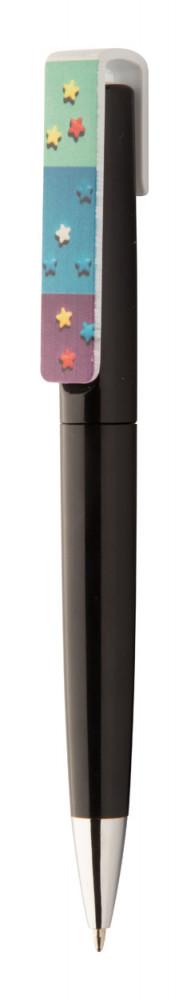 Műanyag, tekerős golyóstoll emblémázható klipsszel. Kék tollbetéttel szállítjuk.