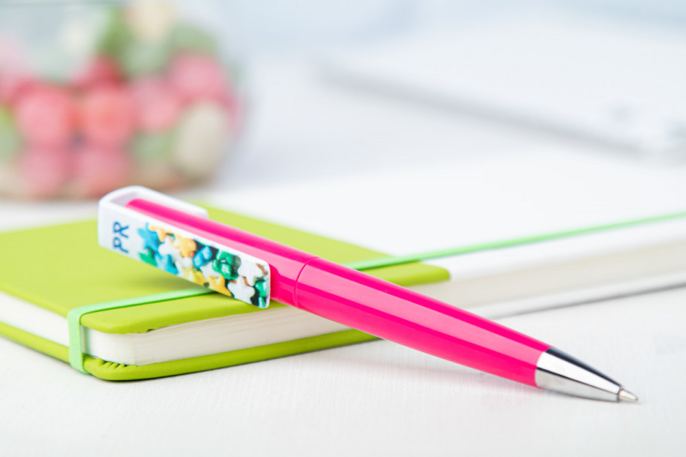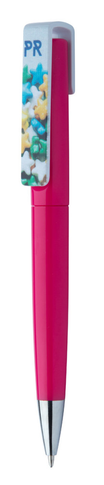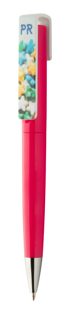 Műanyag, tekerős golyóstoll emblémázható klipsszel. Kék tollbetéttel szállítjuk.