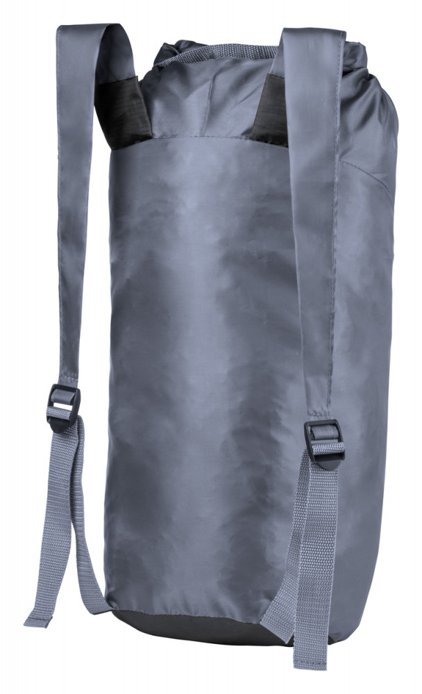 Összehajtható hátizsák 210D poliészter és ripstop anyagból. Csattal, elasztikus madzaggal és állítható vállpánttal.