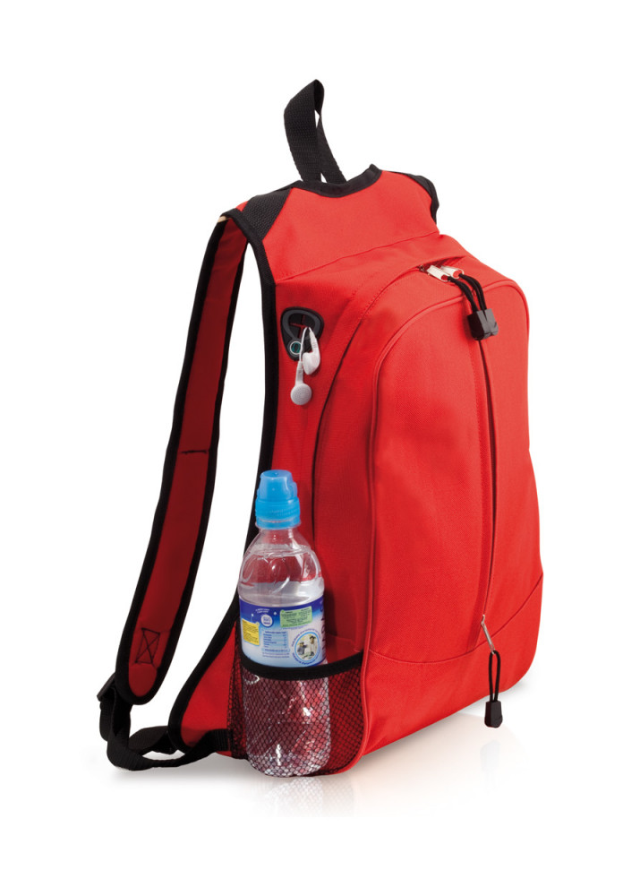 Hátizsák, cipzáras zsebekkel és hálós oldalzsebbel. Anyaga: 600D poliészter.