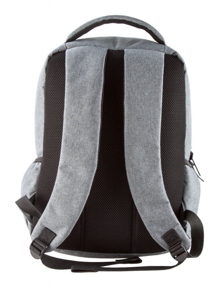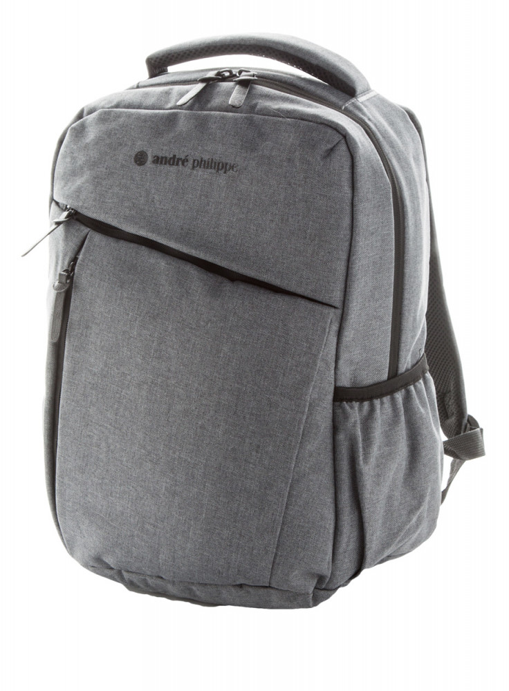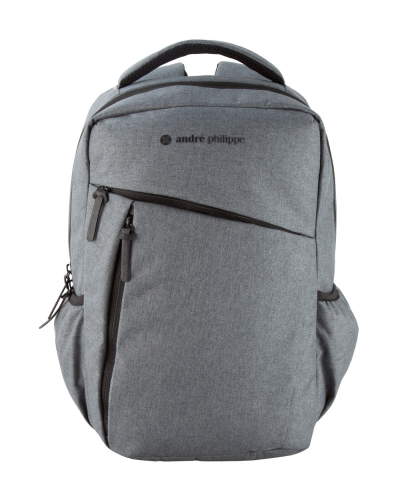 Hátizsák több cipzáras zsebbel, párnázott vállpánttal, hátsó- illetve laptoptartó (15") résszel. Anyaga: kétrétegű 600D poliészter. André Philippe márkatermék.