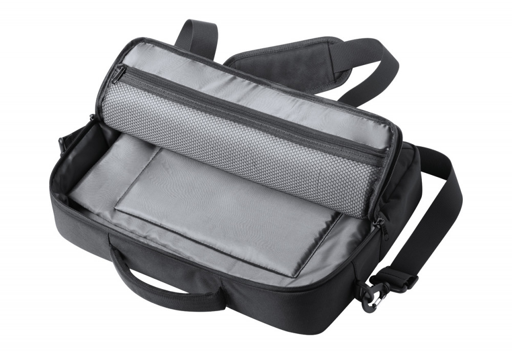 Dokumentum táska, párnázott laptop (15”) és tablet rekesszel, cipzáras zsebbel és állítható vállpánttal. Anyaga: 1200D nylon.