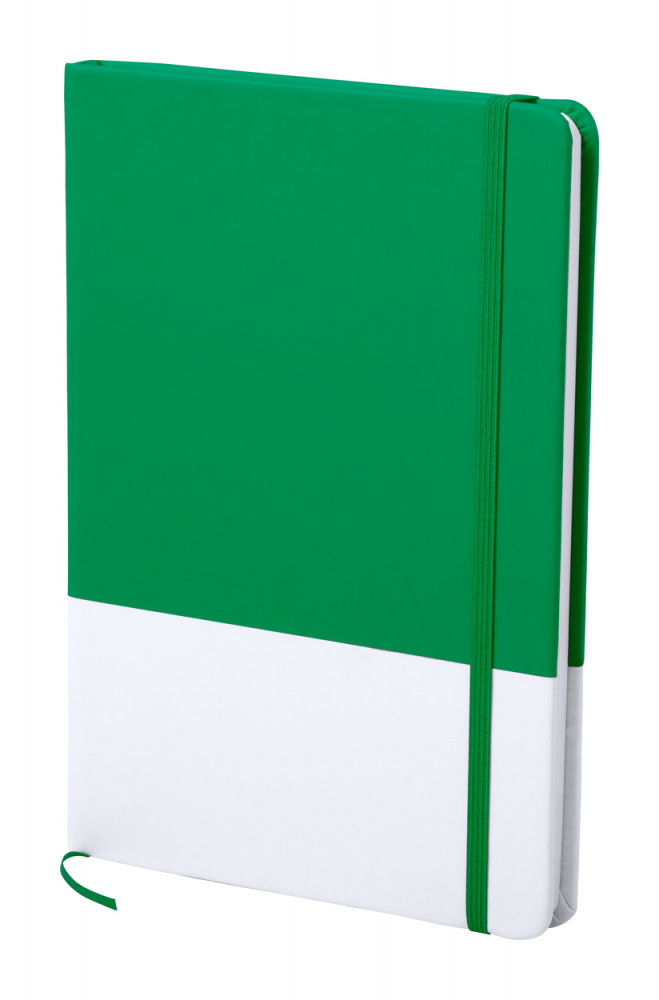 Jegyzetfüzet PU bőrrel borítva, 100 vonalas lappal. Megegyező színű gumiszalaggal és könyvjelzővel. Méret: A5.