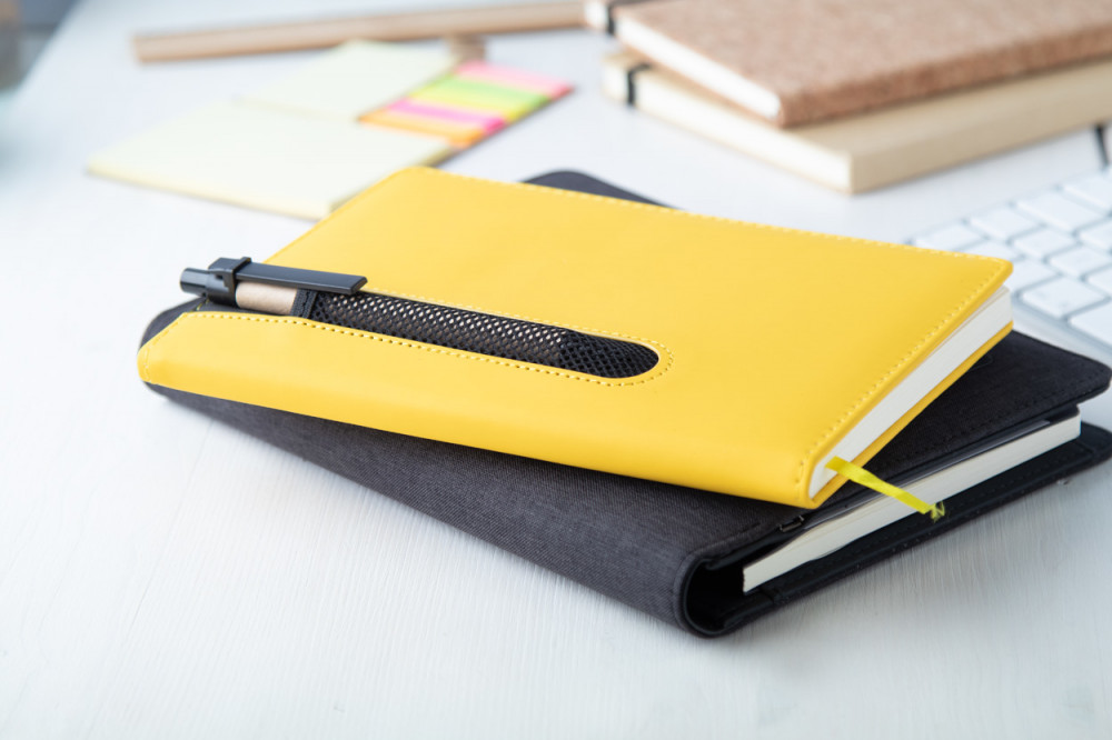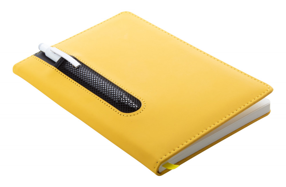 Műbőr, színes jegyzetfüzet, 80 sima lappal és az elején tolltartó résszel.