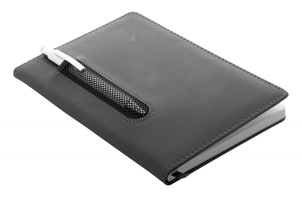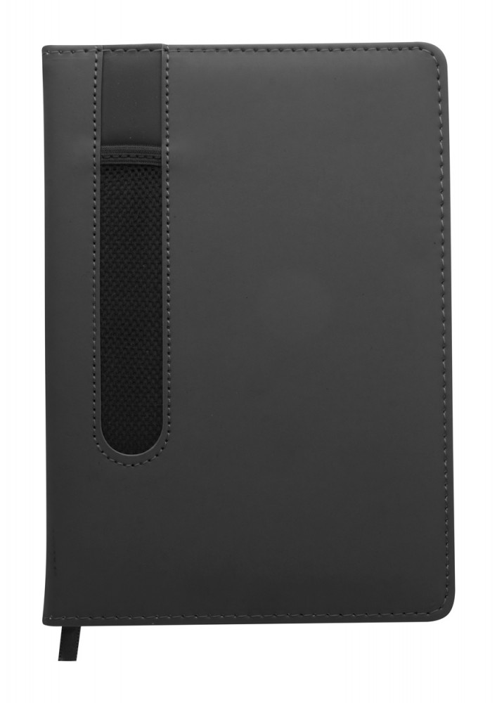 Műbőr, színes jegyzetfüzet, 80 sima lappal és az elején tolltartó résszel.