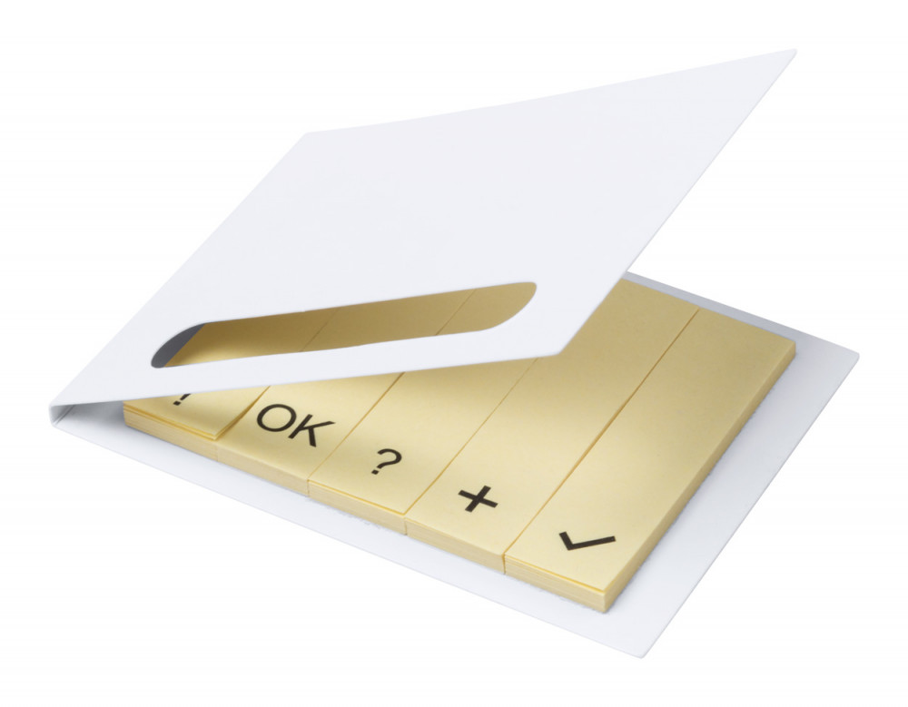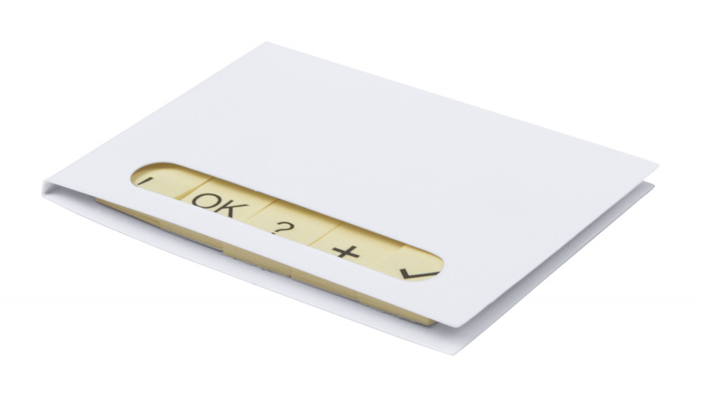 Papír borítású öntapadós 100 lapos jegyzettömb, 5 különböző ikonnal.