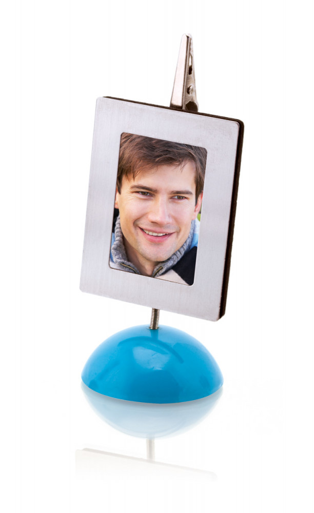Mágneses képkeret jegyzetcsipesszel, színes műanyag talpon.