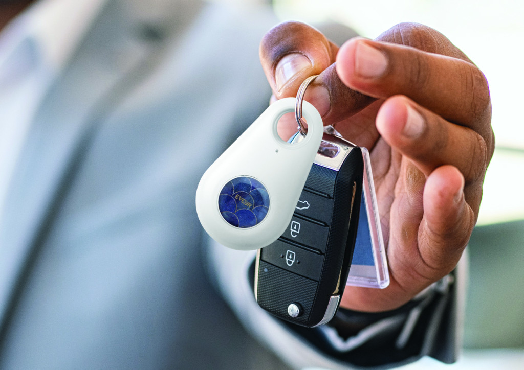 Kulcskereső eszköz bluetooth kapcsolattal, kamera exponáló funkcióval, műanyag borításban. Gombelemmel szállítjuk. Ingyenes iOS / Android applikációval működik.
