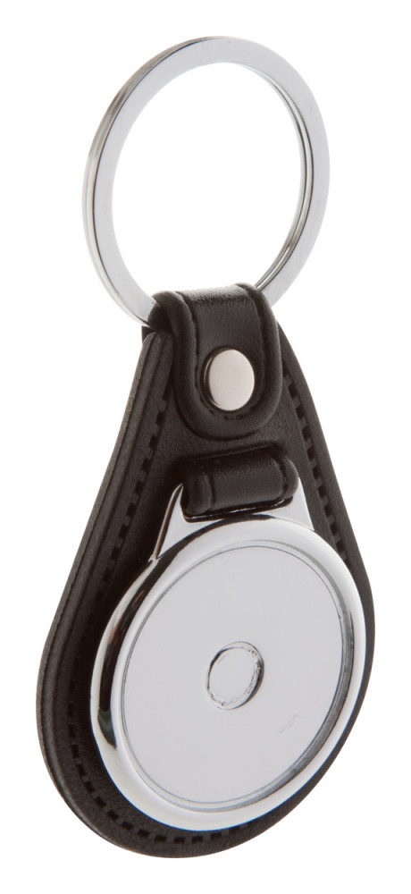 Kör alakú, műbőr kulcstartó fém kulcskarikával. A közepén található fém rész epoxy matricával emblémázható. A termék ára az emblémázás költségét tartalmazza. Minimális rendelési mennyiség: 100 db.