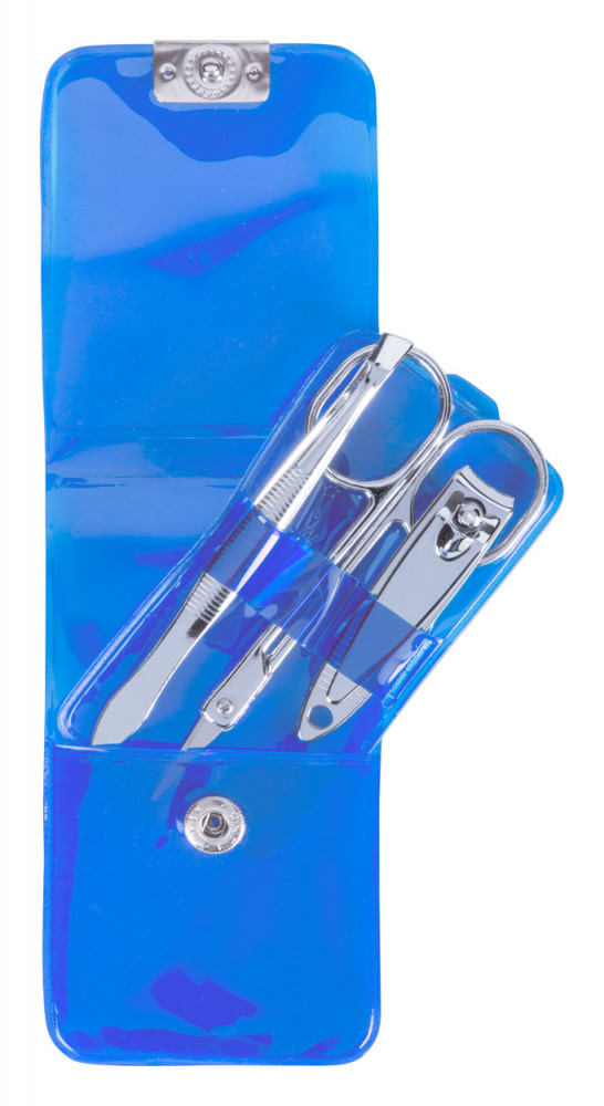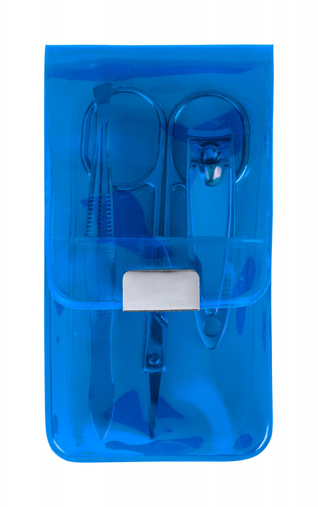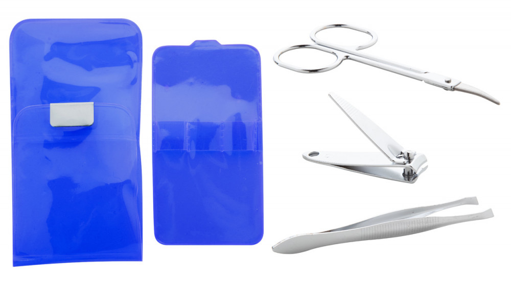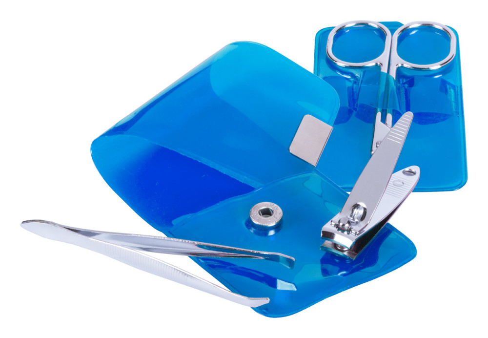 3 részes manikűr szett, műanyag, átlátszó, színes tokban.