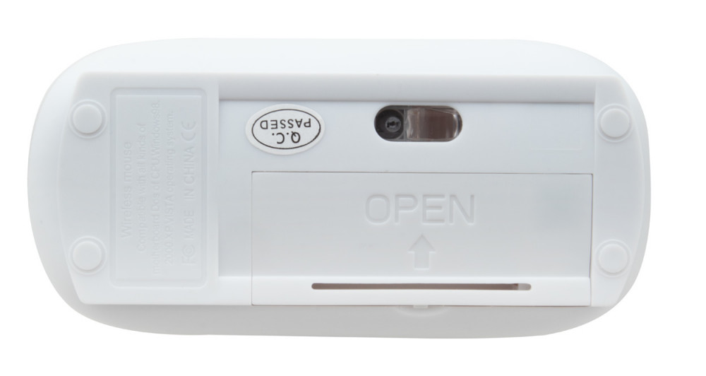 Vezeték nélküli optikai egér, műanyag házban. 2 AAA elemmel működik, elem nélkül szállítjuk. Ez az eszköz nem titkosított vezeték nélküli RF kapcsolatot használ, emiatt nem lehet több darabot ugyanabban a helyiségben (vagy 10 méteres körzetben) működtetni.