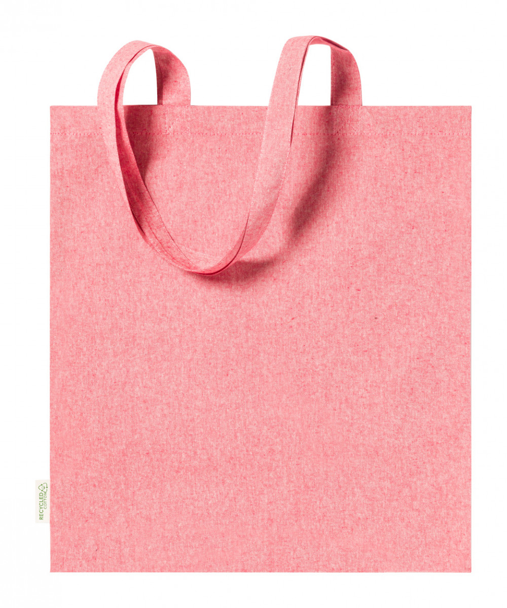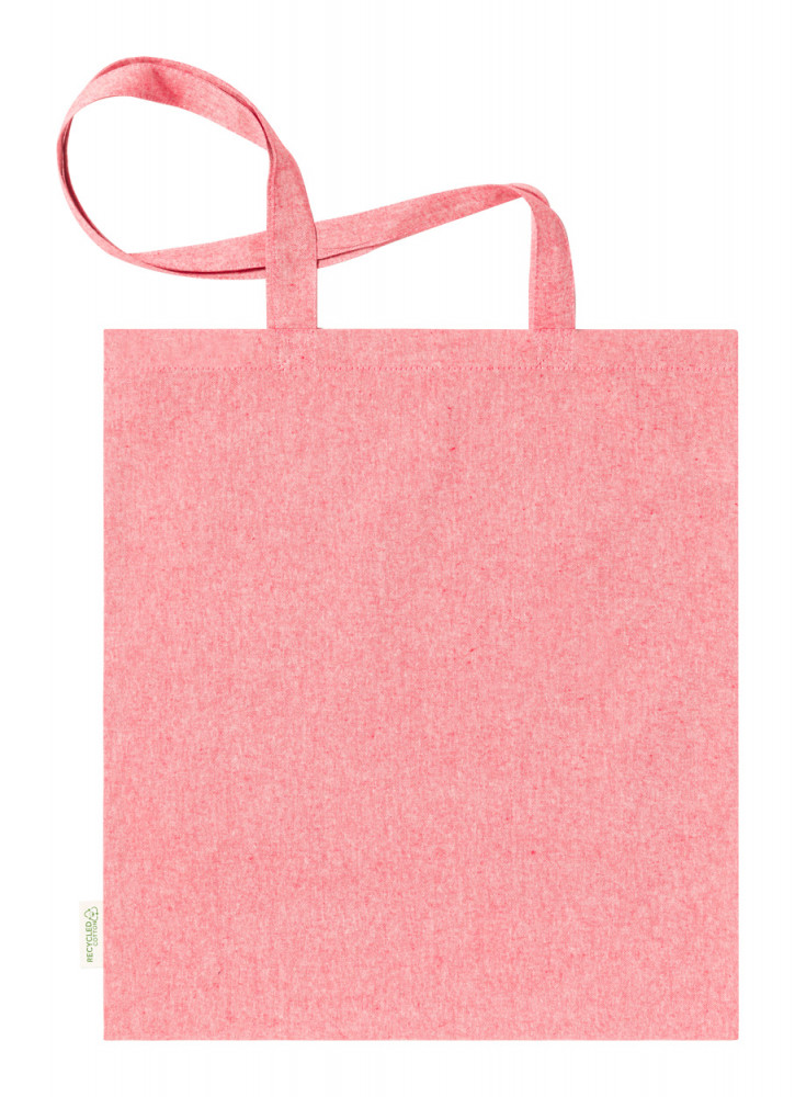 Többször használható, újrahasznosított pamut bevásárlótáska hosszú fülekkel. 100% újrahasznosított pamut, 140 g/m².