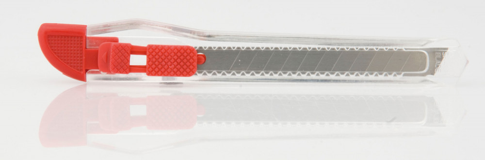 Kicsi, műanyag papírvágó kés átlátszó borítással.