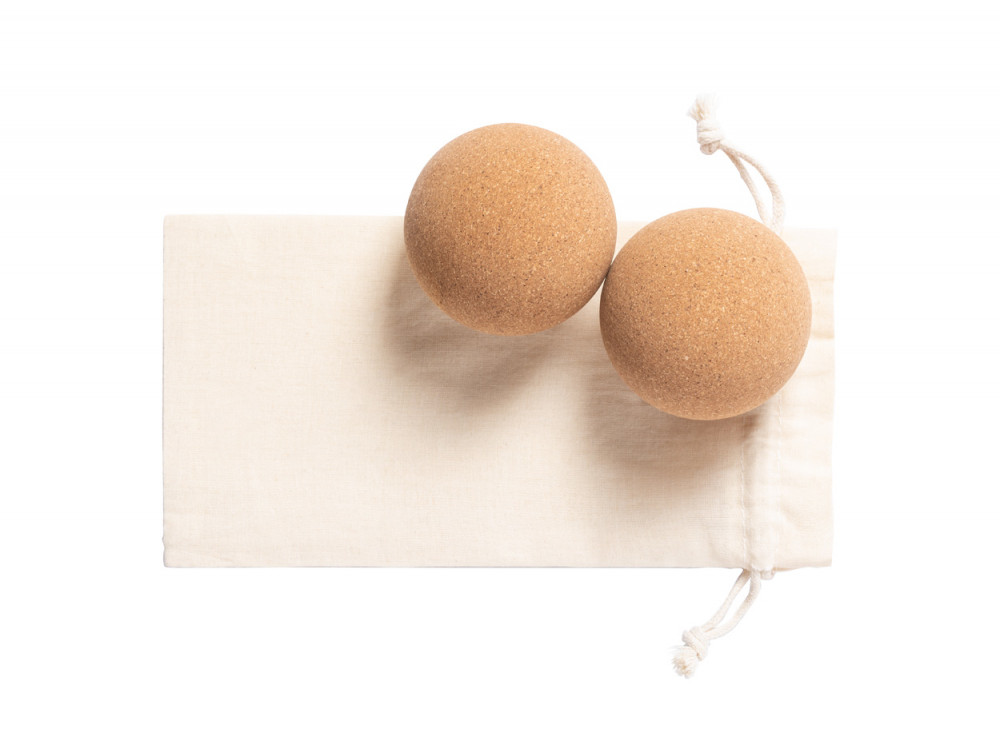 Természetes parafából készült masszázs labda pamut tokban, 2 db. Ideális izomlazító masszázshoz és a feszültség csökkentéséhez az izmokban.