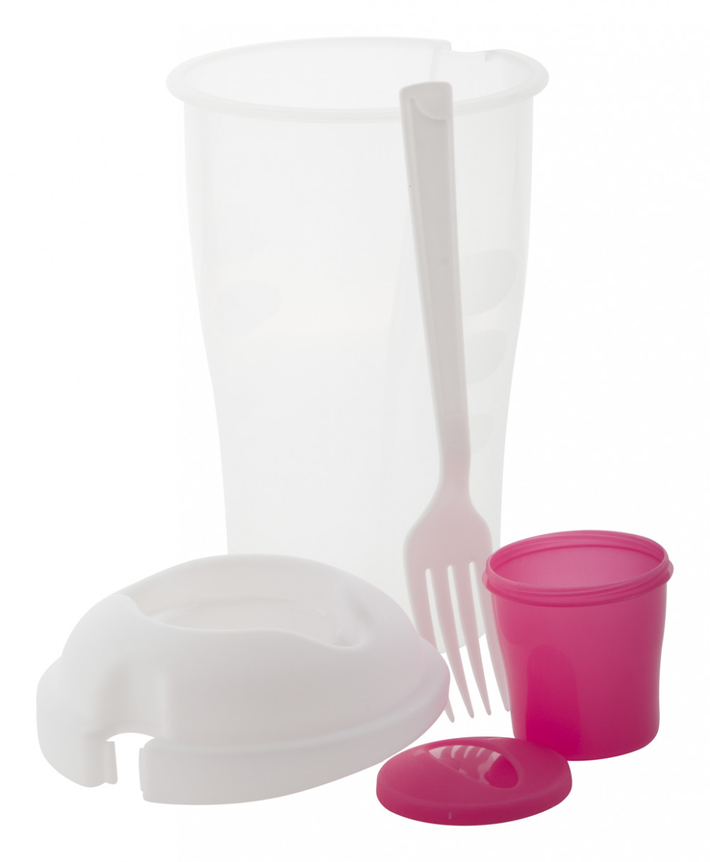 Műanyag saláta shaker villával és dresszing tartó tálkával, 750 ml.