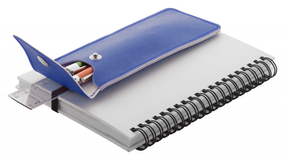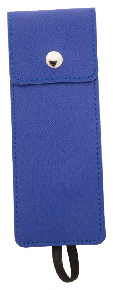 Műbőr tolltartó elasztikus gumival, melynek segítségével könnyen rögzíthető jegyzetfüzetre vagy mappára.