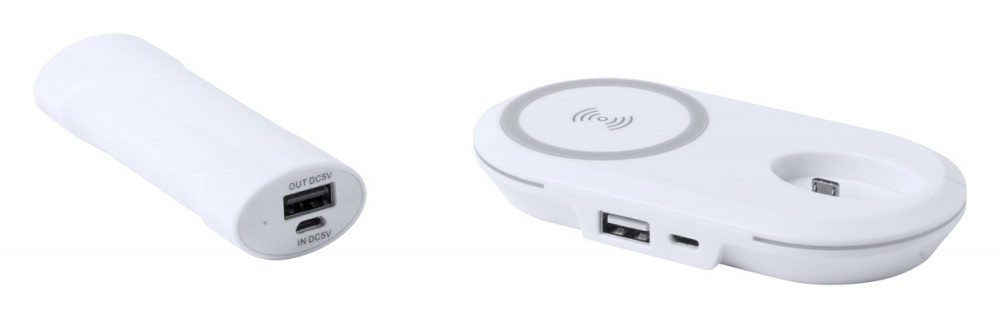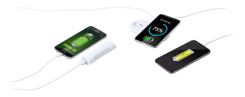 Vezeték nélküli töltő 200mAh kapacitású USB-s power bankkal. USB-s töltőkábellel.